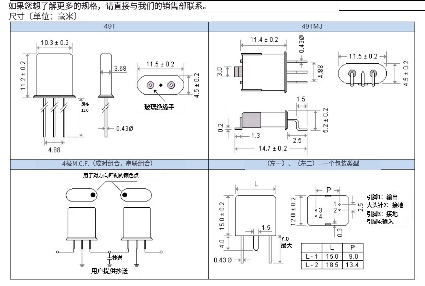 49T 晶體濾波器