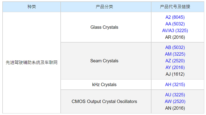 隨著先進(jìn)輔助駕駛系統(tǒng) (ADAS)、胎壓偵測(cè)器 (TPMS)、及車用信息娛樂系統(tǒng)的普及化,車用頻率組件同時(shí)追求”零缺陷”。臺(tái)灣晶技TXC提供完整的車用石英晶體諧振器及振蕩器產(chǎn)品線,經(jīng)過嚴(yán)格的品管,以提供最穩(wěn)定的產(chǎn)品效能。