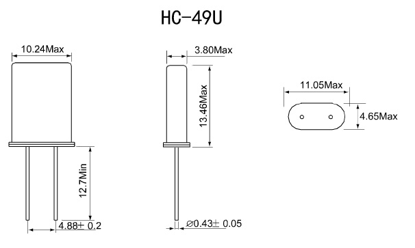 HC-49U也是直插式2腳晶振,體積為11*4.5*13.4mm,功能應(yīng)用跟HC-49S幾乎無差別,因體積較HC-49S大,造成電路板空間的浪費(fèi)且造價成本較高,現(xiàn)在已經(jīng)漸漸被HC-49S封裝所代替。注意:HC-49U跟HC-49US是不同的。