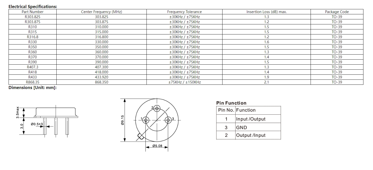 TO-39聲表面波晶振