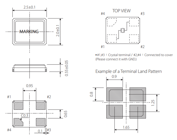 SX-2520貼片晶振外形尺寸: