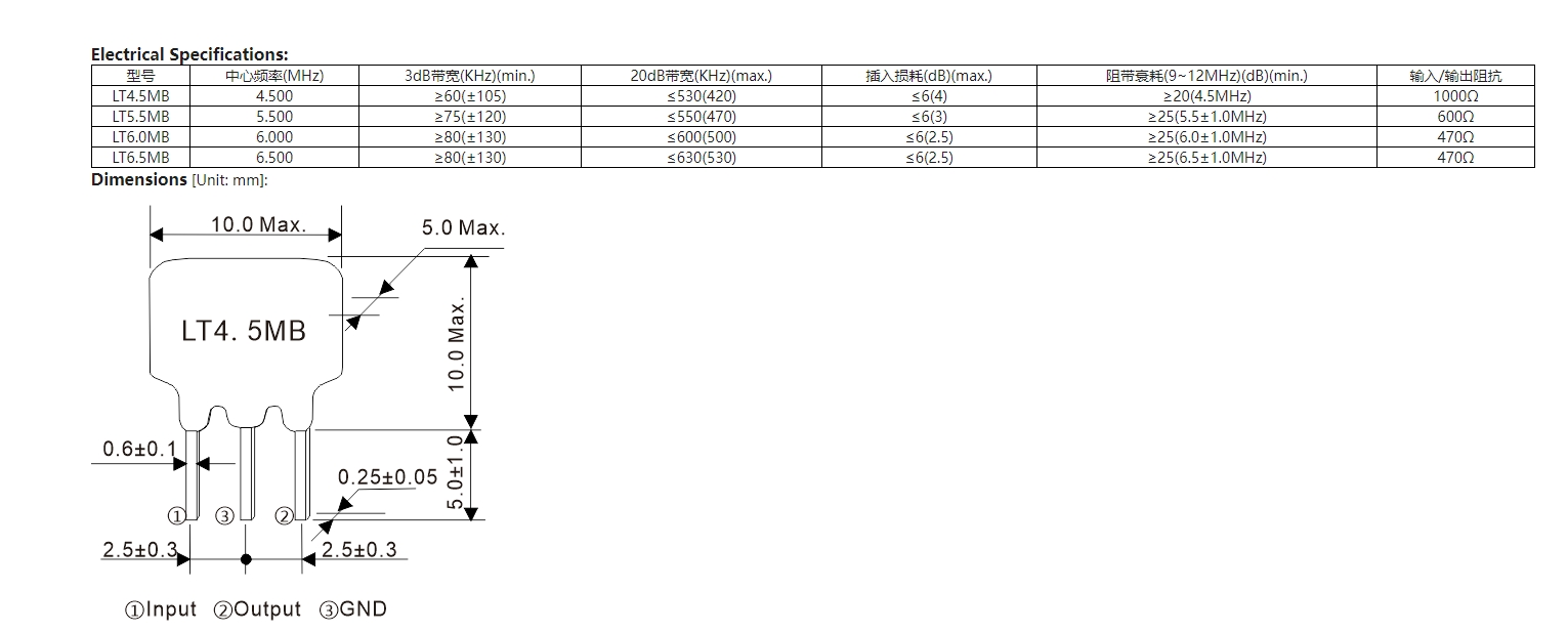 1. 采用插件3針封裝,外形尺寸10.0*10.0*5.0mm