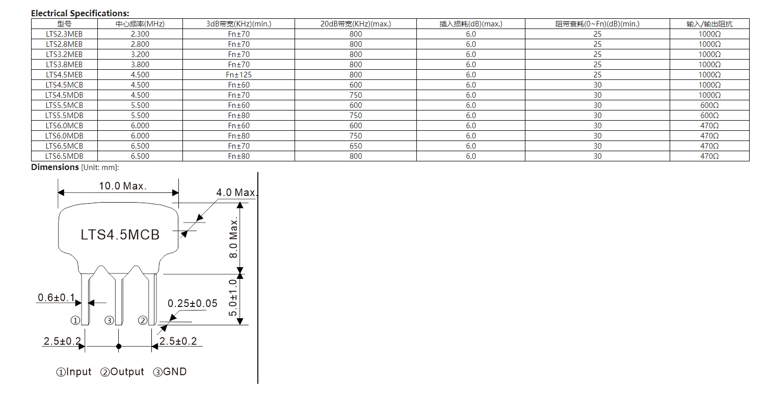 1. LTS MCB/MDB/MEB的最大尺寸為(10×8.0±4.0mm)