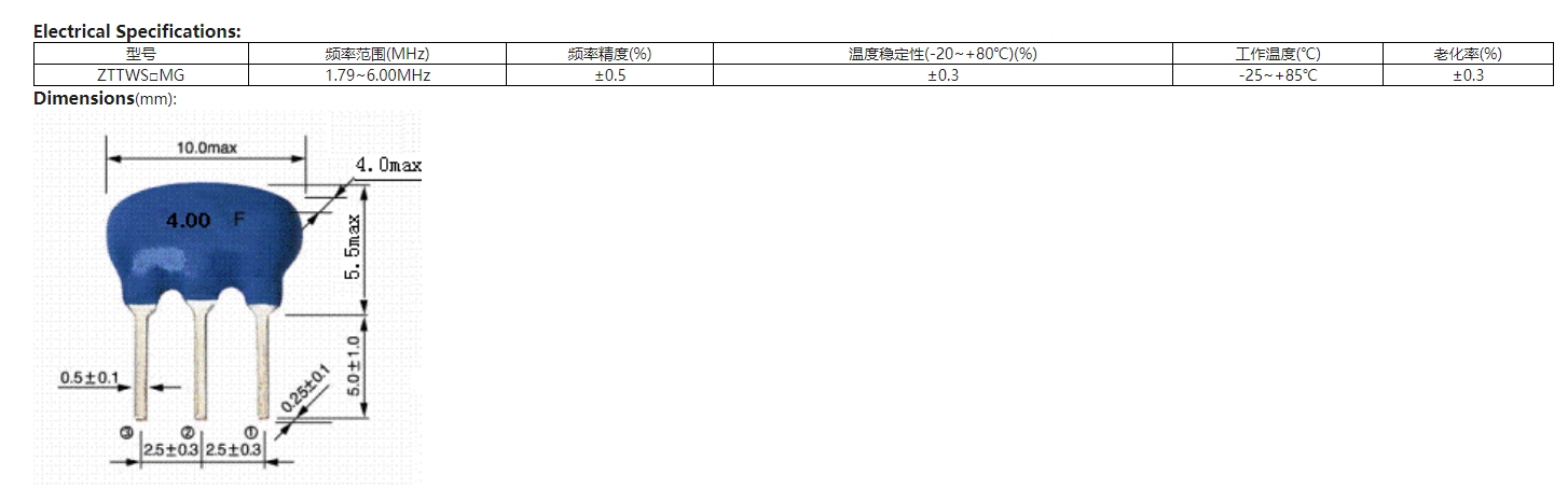 ZTTWS系列陶瓷諧振器